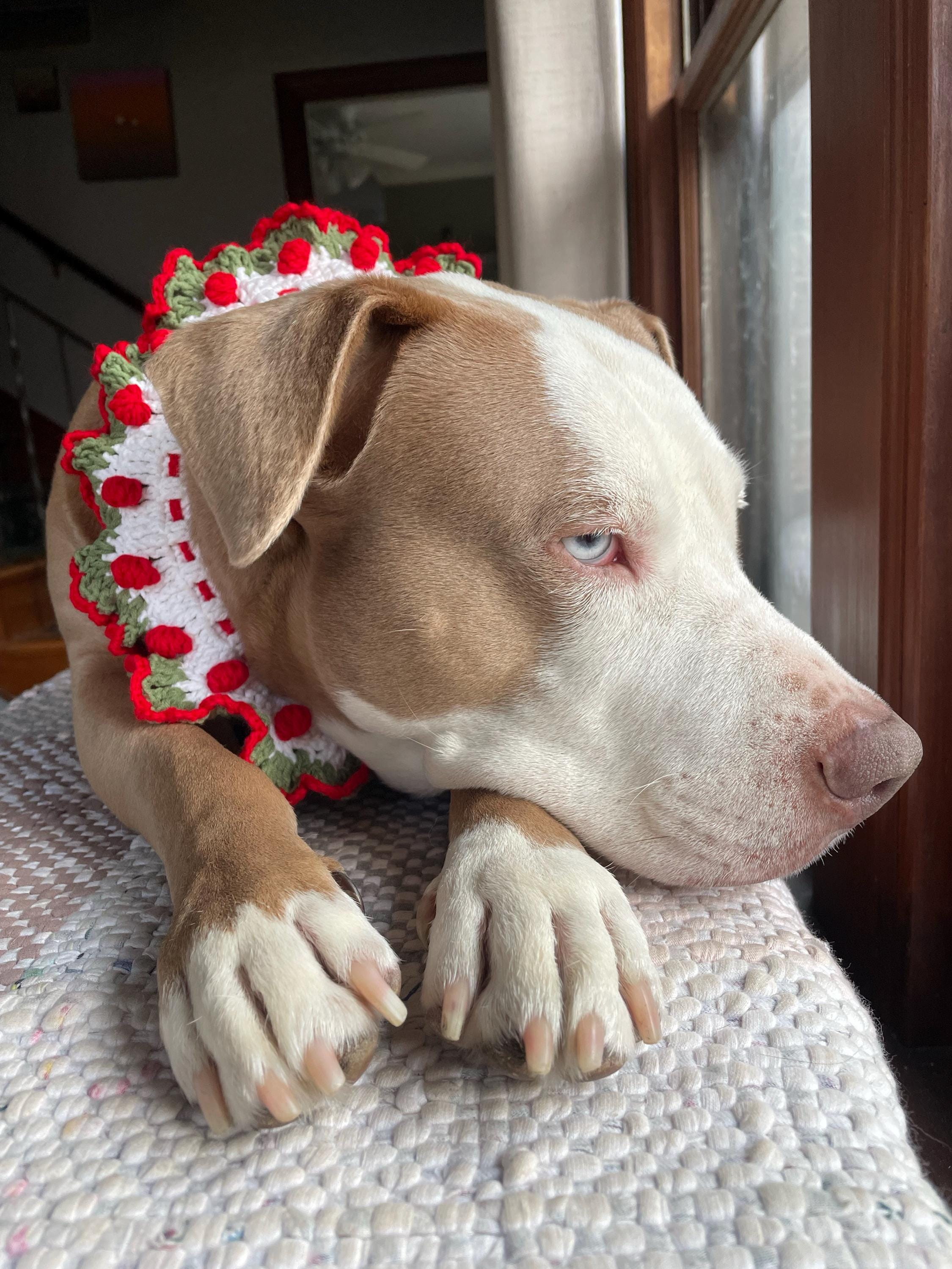 The crochet dog collar is perfect, beautifully made, and arrived just in time for Christmas. I’m so happy that my dog will have a little something extra to wear on Christmas when we visit my mom.