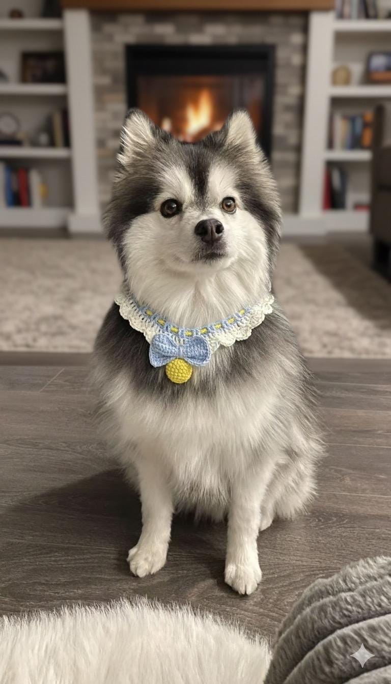 Add a touch of sweetness to your furry friend’s look with this handmade crochet pet collar 💙💛