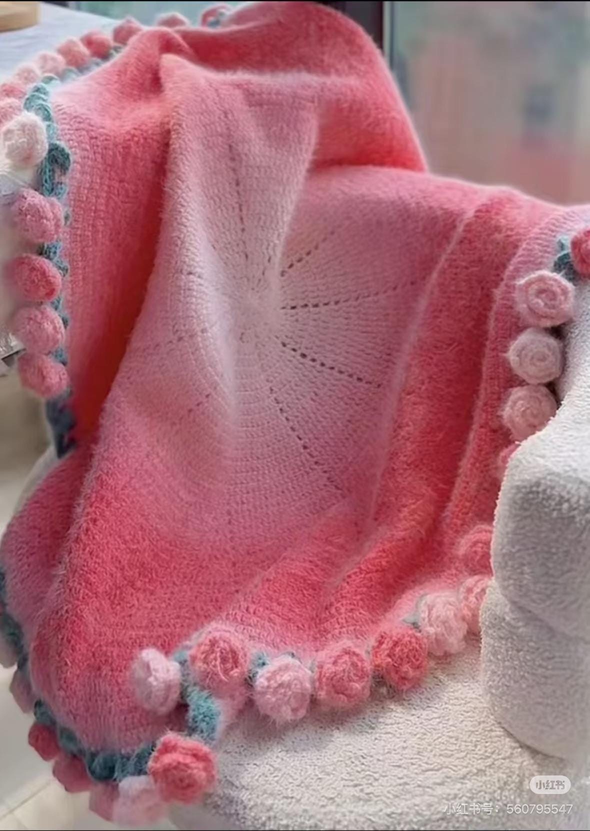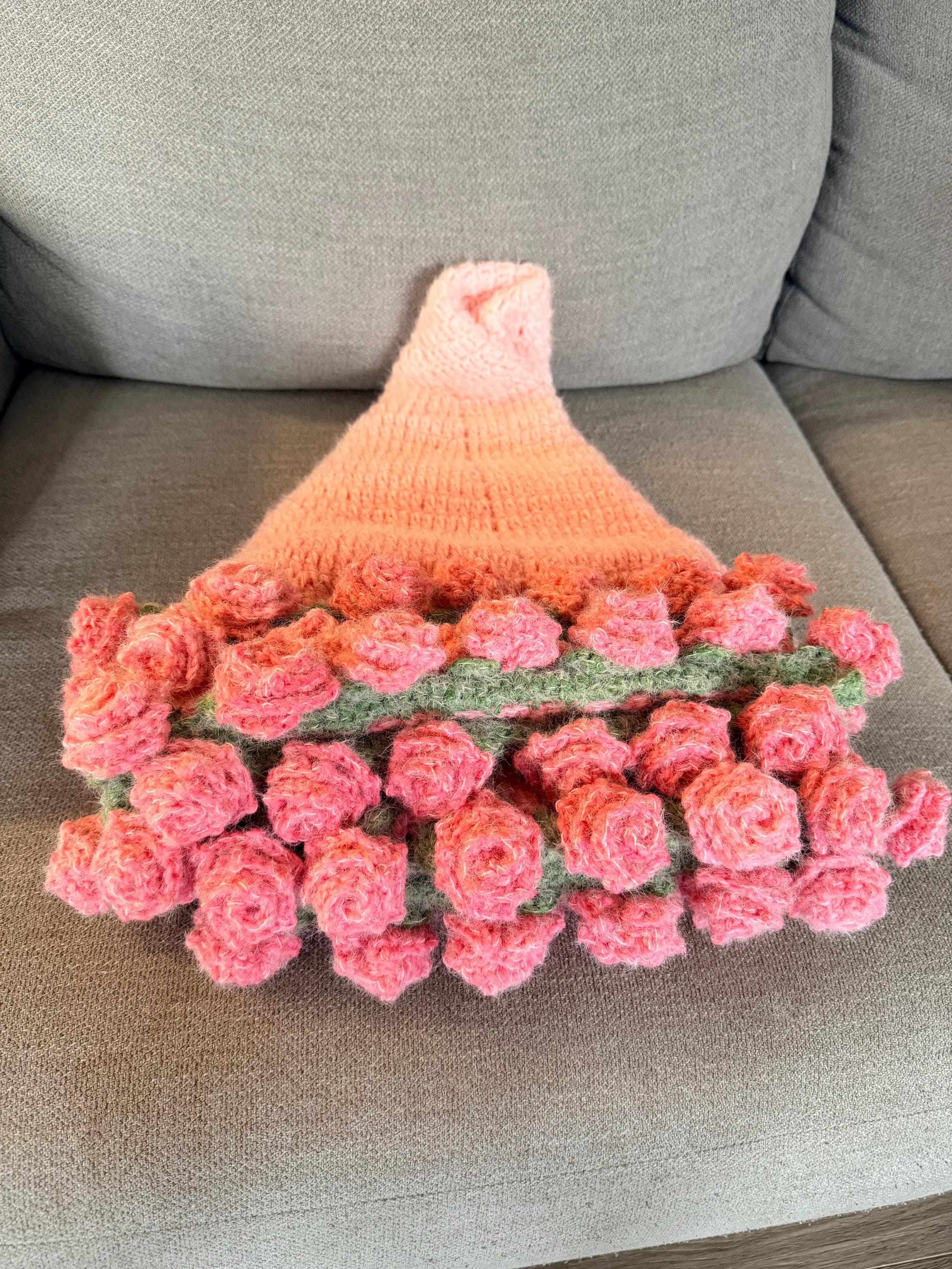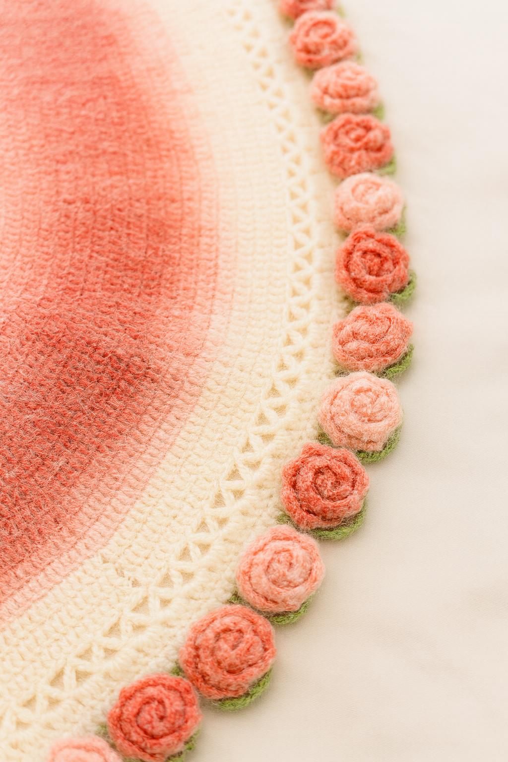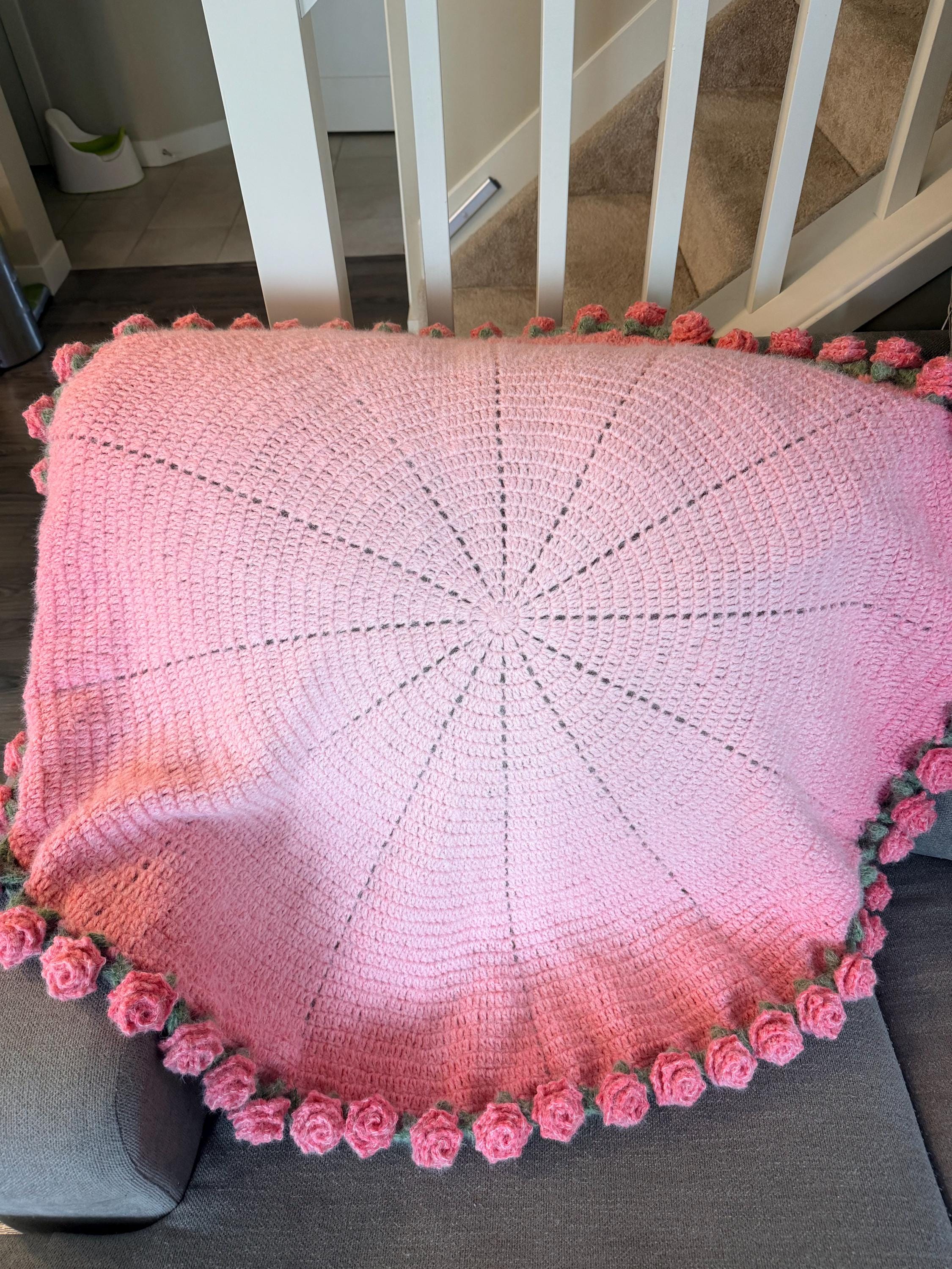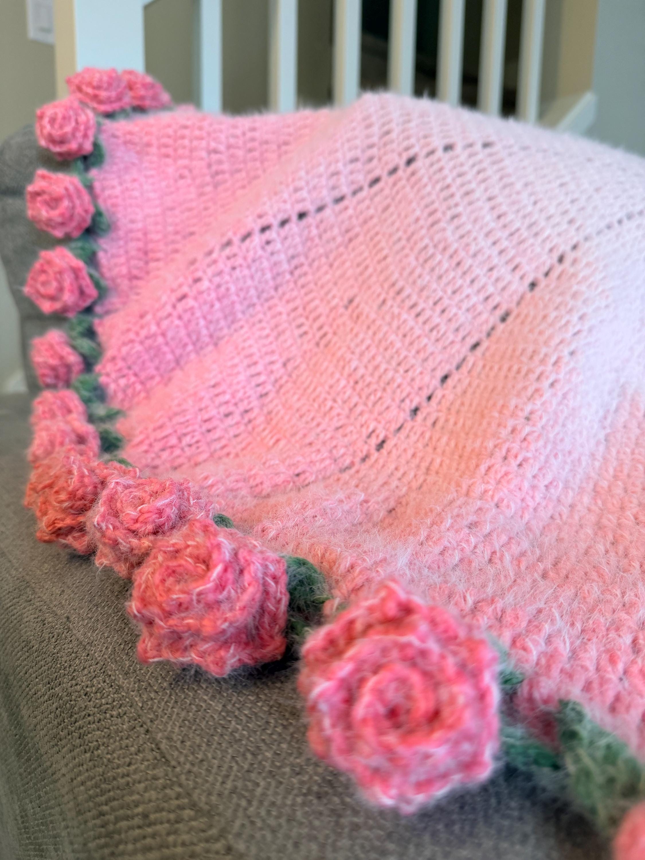 This handmade Rose Garden Crochet Blanket features 60+ individually crocheted 3D roses stitched onto a dreamy pink gradient, creating a soft, romantic, one-of-a-kind piece you won’t find anywhere else.