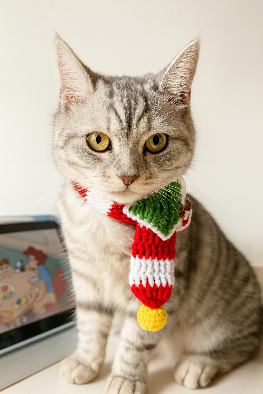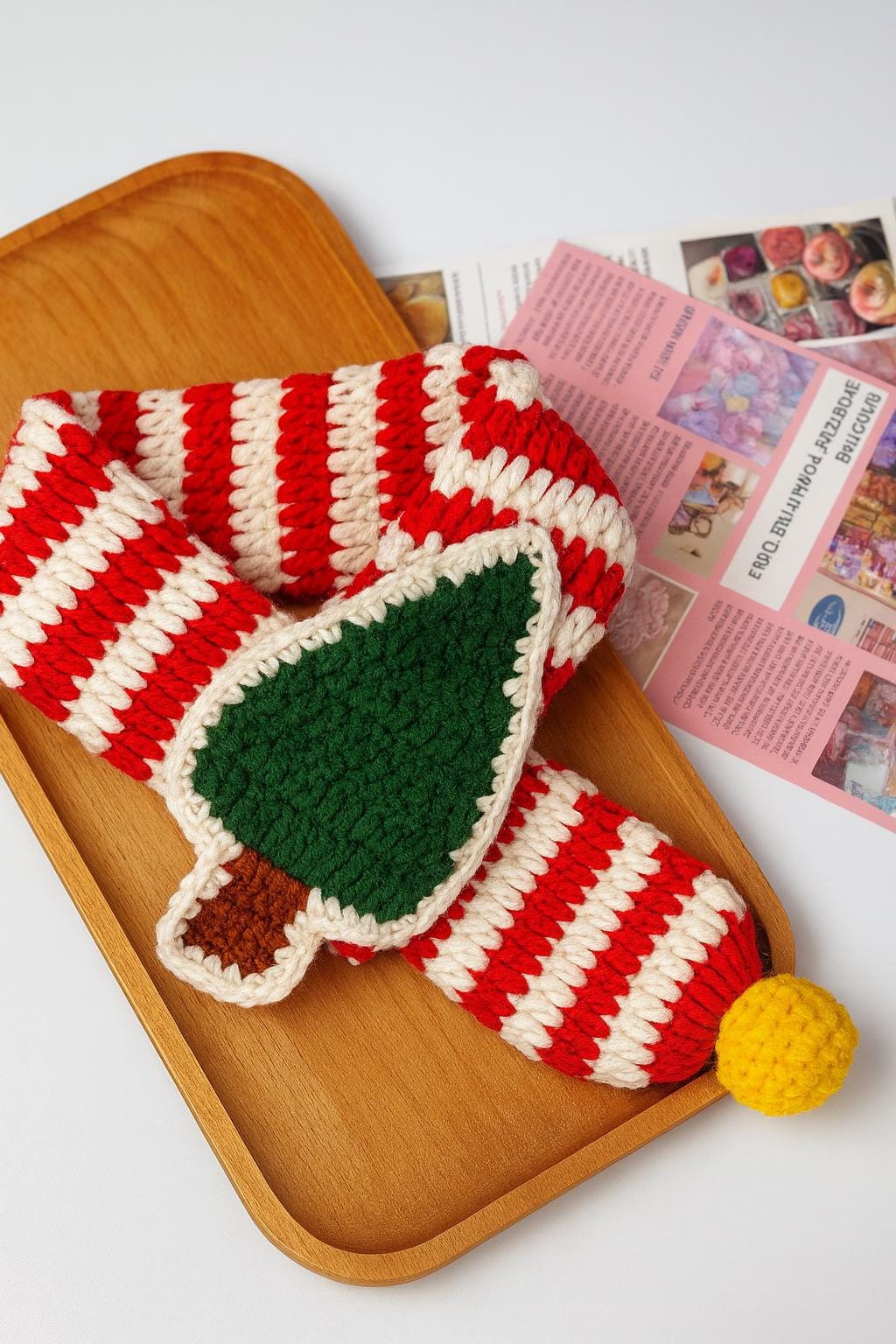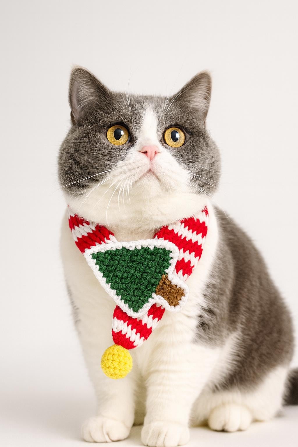 Designed in festive red and white candy cane stripes and decorated with a cute green Christmas tree applique and a soft yellow pom-pom, this cozy accessory adds the perfect touch to your pet’s holiday photos, parties, and family celebrations.