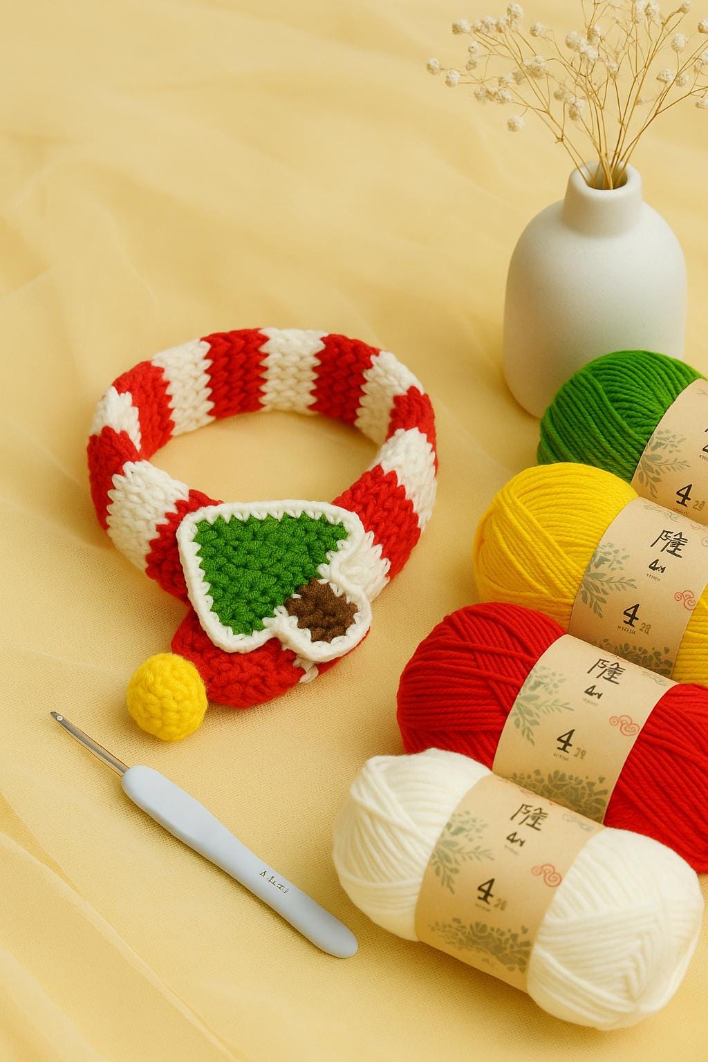 Bring holiday cheer to your furry friend with this adorable handmade crochet Christmas pet collar!