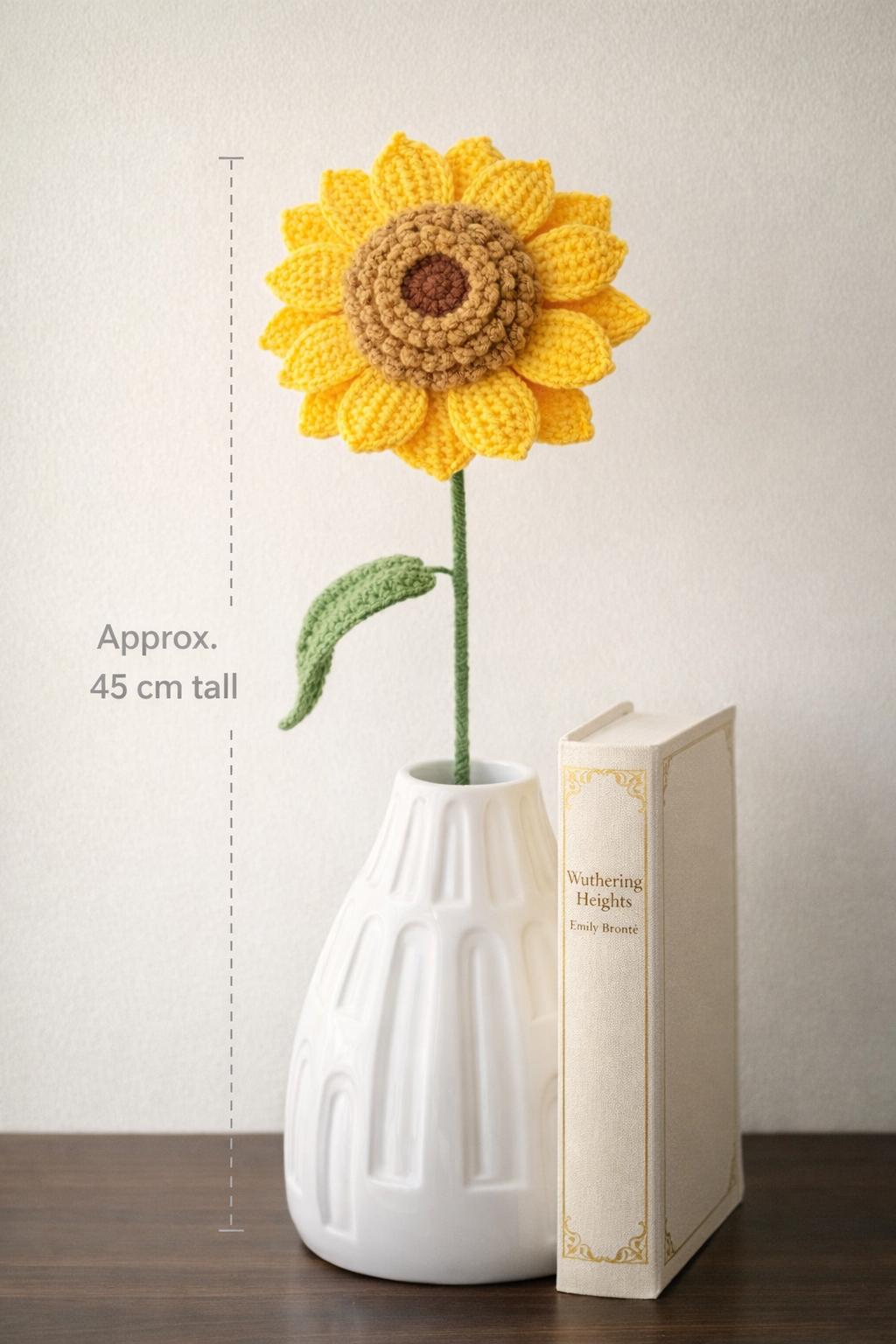 Lovingly crafted stitch by stitch, this sunflower is designed to last forever, no watering, no wilting, just warmth and joy all year round.