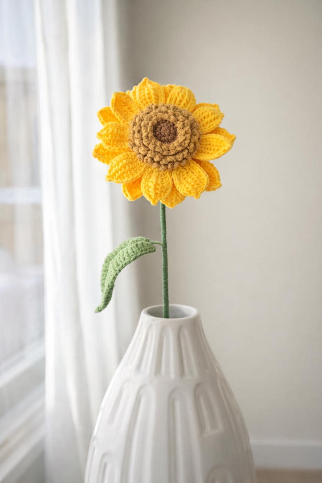 • This listing is for one crochet sunflower (vase and other flowers not included)