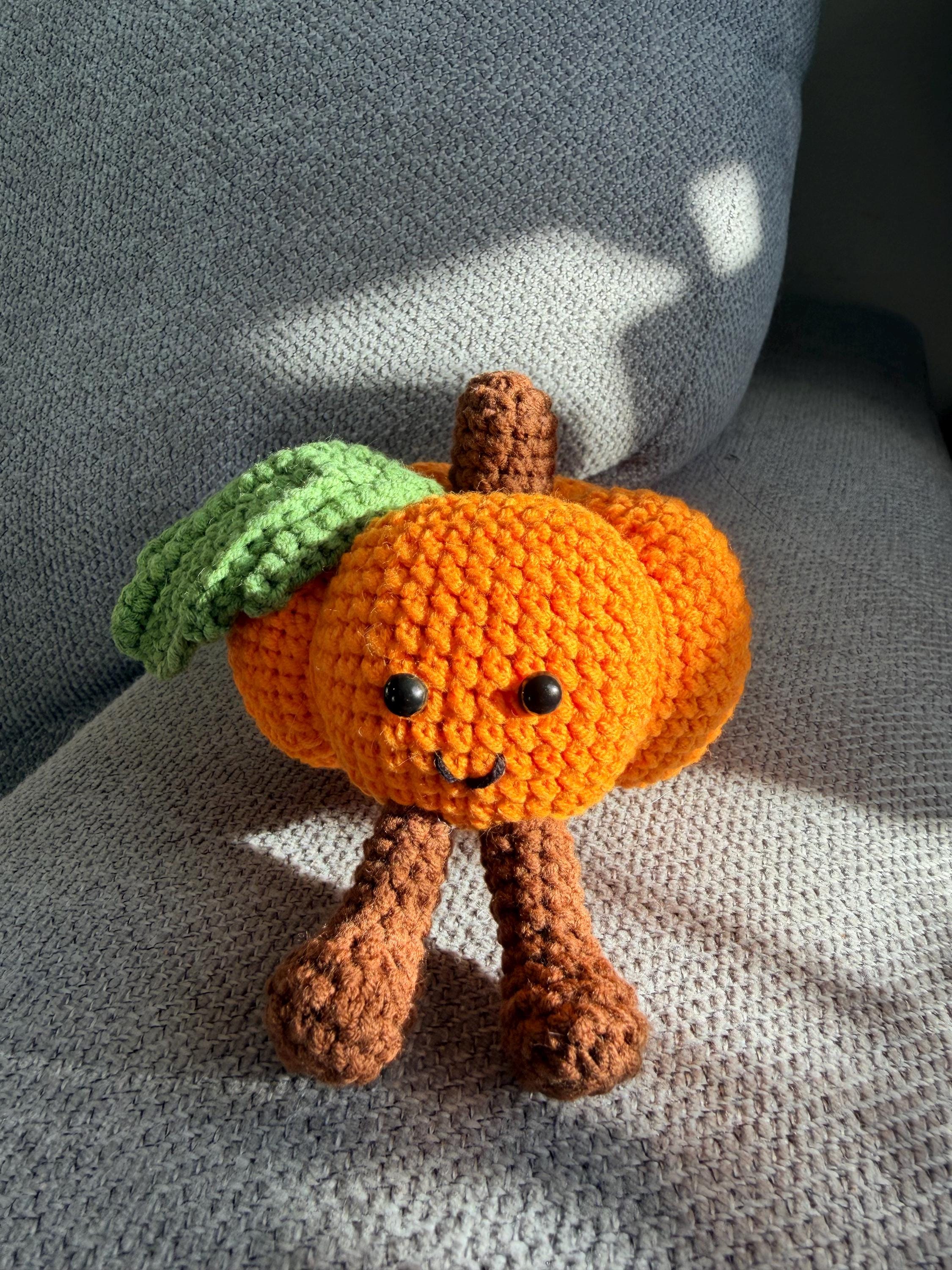 • Color: Orange pumpkin with green leaf and brown stem & legs