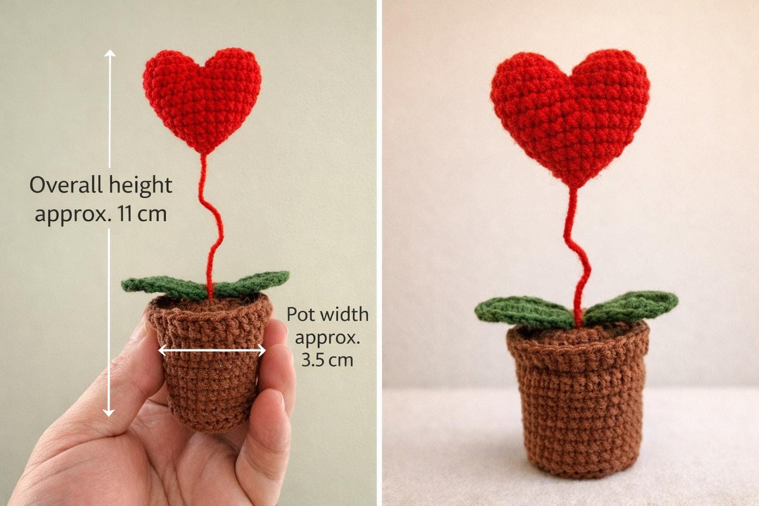 This crochet heart plant is carefully handmade with soft yarn and shaped into a sweet heart bloom, growing from a cozy crochet pot. It’s a meaningful keepsake that never wilts - a gentle reminder of love, warmth, and care.